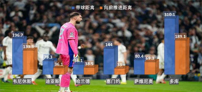 从推进距离上也能看到,曼城4大攻击手的向前效果,都不见得有皇马2人组来得好。更不要说阿韦罗亚故意留下右路防守陷阱给多库,完成一次成功的诱杀。